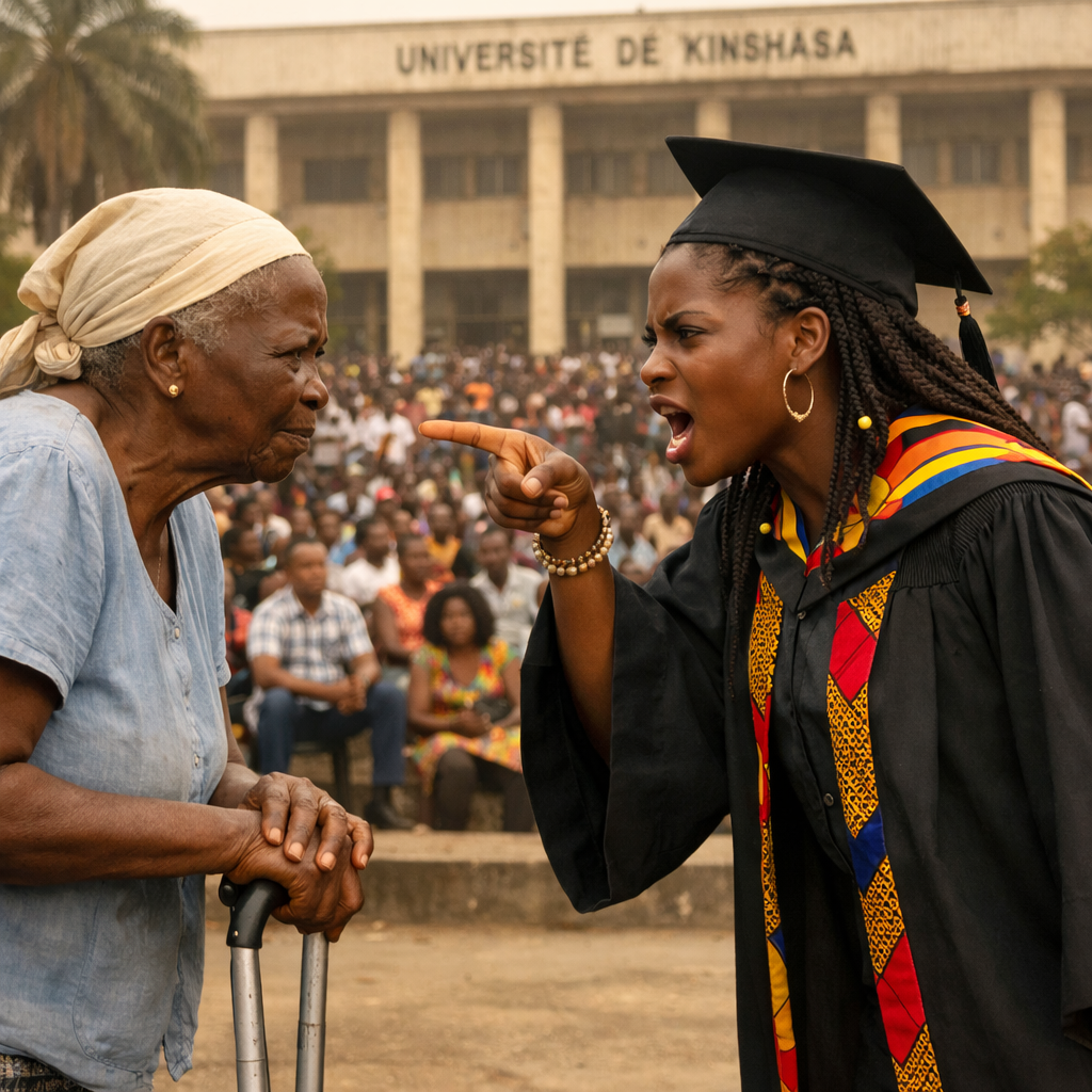 Quand la porte du hall s’ouvre enfin et que les diplômés sortent, Grâce se redresse. Son cœur bat plus vite. Elle voit Adaora, splendide dans sa toge, diplôme en main, entourée d’amies bien apprêtées, celles qui rient fort, celles qui sentent le parfum cher, celles qui marchent comme si la ville leur appartient.